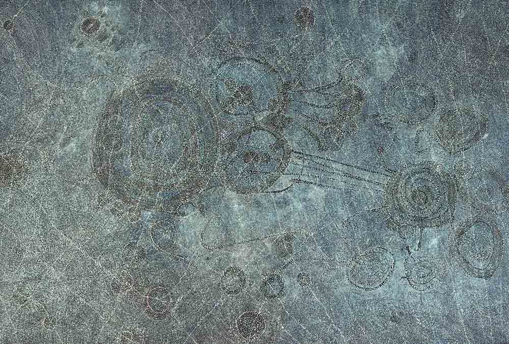 Ngurra means country in Gurindji Languge. This work is a reflection of the repetitive nature of the land. The earth cracking in the desert or bright intensity of lightning over the land, in this repetition Sarrita feels a calling to the land and its simple intricate beauty that sings through her.