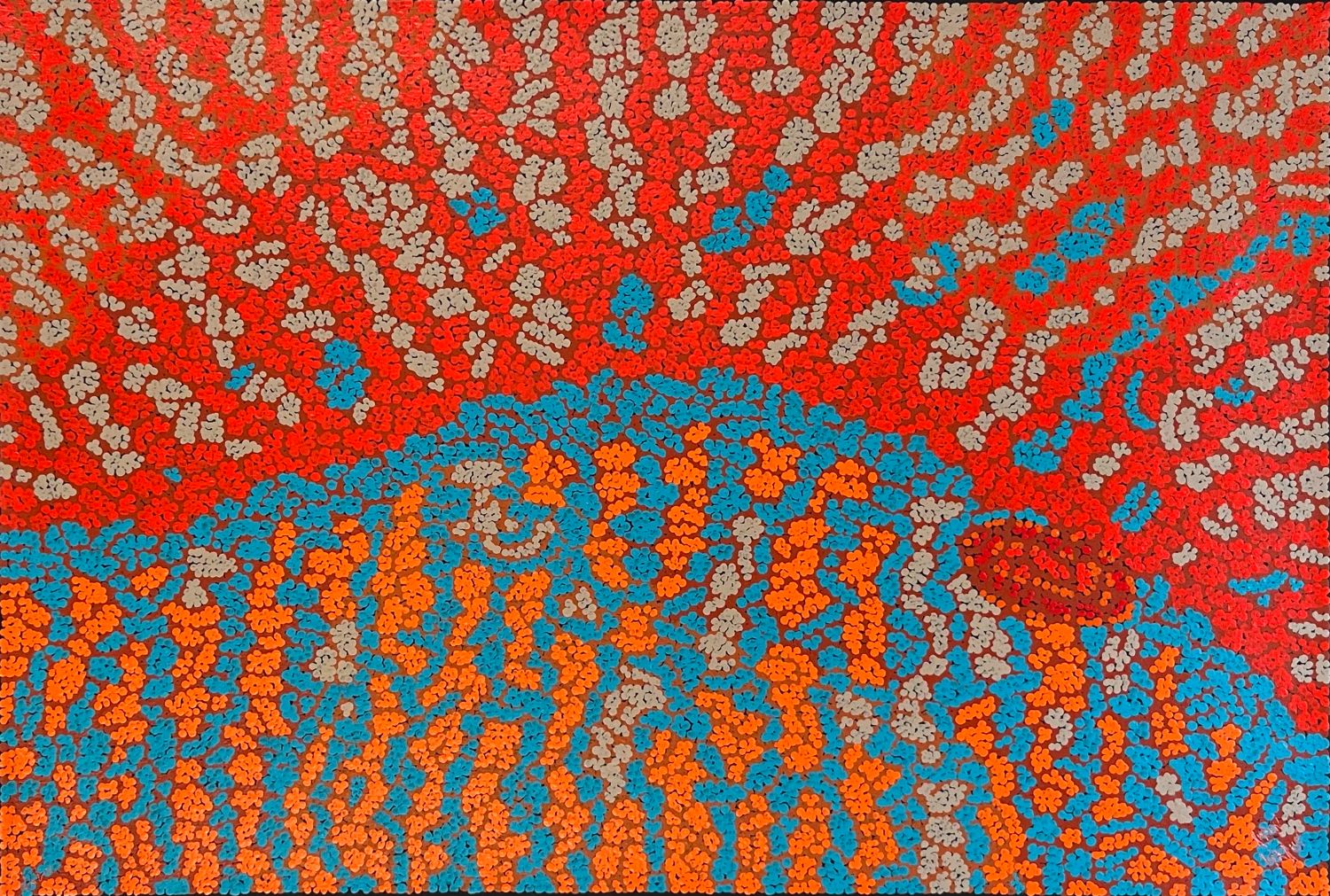Kurun and Walu's works represent the development of contemporary Aboriginal abstract art. While their paintings are often not clear at first glance, the stories they portray begin to reveal themselves through colour, line and space. In this painting they have come together and collaborated to give us this beautiful artwork.