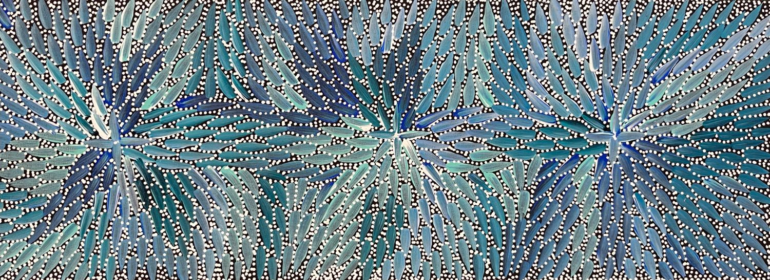 This work represents the leaves of the Kurrajong tree used in the Utopia region to treat a variety of ailments. The women collect the leaves, dry and mix them with Kangaroo fat, in order to extract the plant's medicinal qualities. The significance of the Kurrajong tree and the part it plays in healing is celebrated in the Women's Awelye ceremonies.