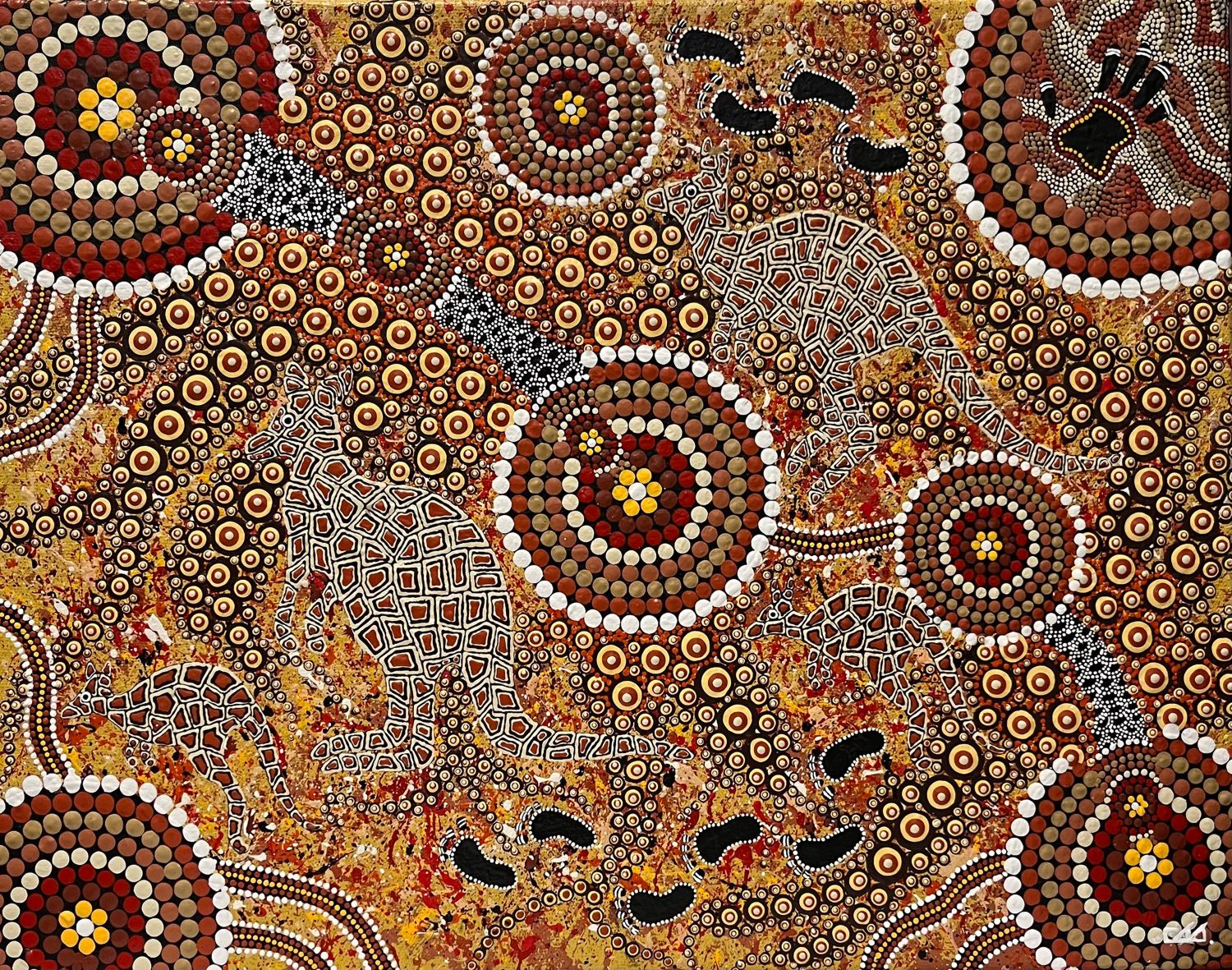 'The kangaroos blend in with the environment to keep safe. The circles are the life force of the earth.'