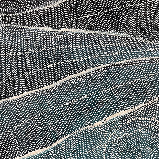 ‘Earth Elements’ is Sarrita’s latest series of artworks. Sarrita has been working on these ideas for years through her other series of works such as lightning and the elements artworks such as water. However Sarrita always wanted to make even more subtle artworks combining the many aspects of the earth elements and the repetitive patterns of these elements. In this particular piece Sarrita reflects on the beautiful fresh water pools that occur after the first big rainfalls or vast ocean waters. The colours are always different from one pool of water to another. But i am always amazed at the other markings that occur from the life on, in and around the water catchments. The fine dotting is an abstract representation of all this life. The subtleness and lightness of these dots represents the idea that these markings are made in the past, present and future, repetitive patterns for eternity.