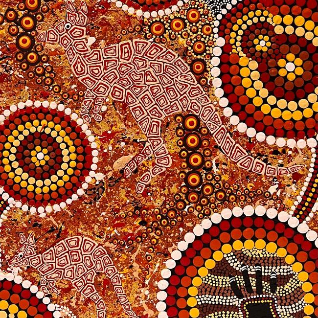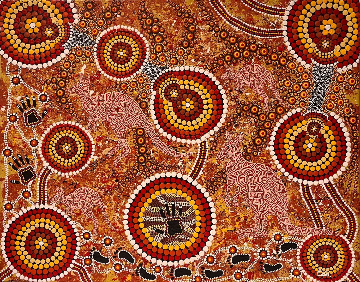 "The Kangaroos are camouflaged in their environment. The footprints show our people tracking them for food. The handprints say we belong to this land".
