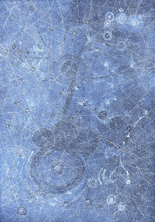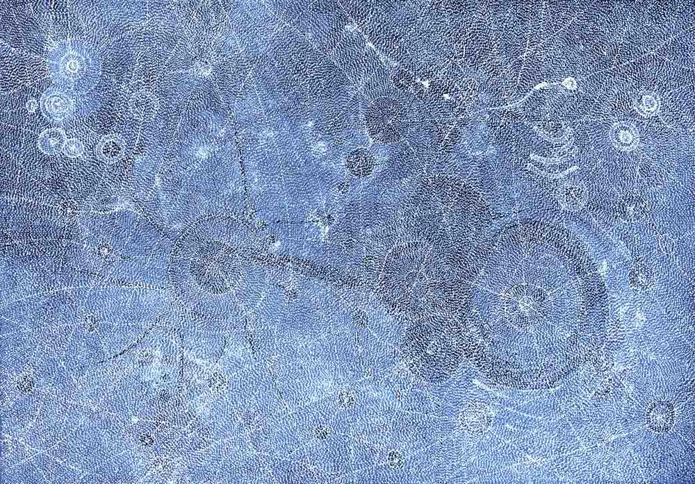 Ngurra means country in Gurindji Languge. This work is a reflection of the repetitive nature of the land. The earth cracking in the desert or bright intensity of lightning over the land, in this repetition Sarrita feels a calling to the land and its simple intricate beauty that sings through her.