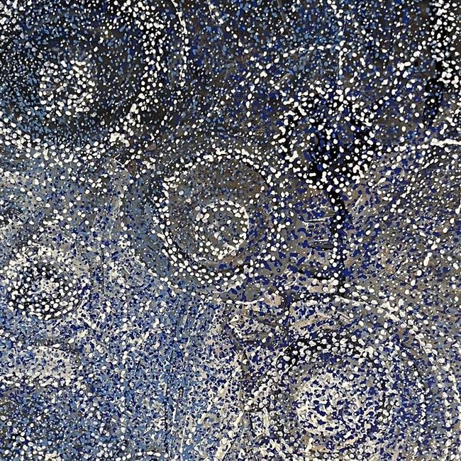 This artwork reflects the movement of the earth - a story originally from my father, the late William King Jungala. Inspired by the harsh elements of my grandmother’s country, Kalkaringi. The layering of the piece is reflective of those who survived while fostering the next generation. Hidden by time yet playing a pivotal role in shaping today’s paths. The movement across the canvas bends and flows, balancing todays fast paced life with cultural ties always calling us home, and ensuring we carry our stories and traditions forward long after we too are welcomed back to the land.
