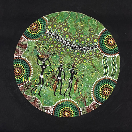 "Song Lines. Maps of the earth. Our people moved around the land not staying in one place too long to protect the land". Colin J Jones.