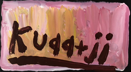 Kudditji paints his country where he remembers taking the younger boys through their initiation ceremonies. He would teach them about the emu ancestors and at the same time how to hunt emu. This is the country he paints. Powerfully rich in colour, his pieces have a vibrant and commanding energy.